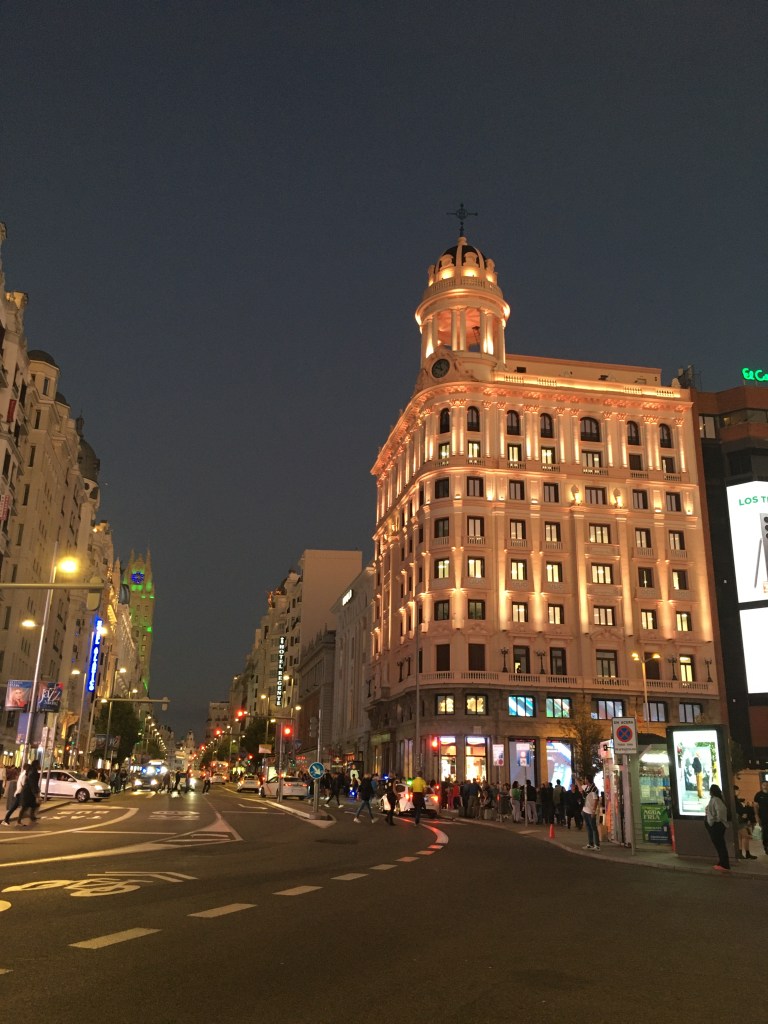 In the evening, I decided to go out for a walk. The sun had nearly set and suddenly, I felt the energy on the Gran Via changing and the whole place coming alive. People were even moving differently and there was a kind of energy in the air as they headed into restaurants, shops, cinemas, and emerged from taxis, dressed up to go to the theatre. A pretty, smiling, young African American lady, in a stylish dress, who was clearly on vacation, dashed across an intersection, calling out to her partner (who was still on the pavement), while hailing a taxi. Though the taxis were white, not yellow, for a moment, I felt like I was in New York!
