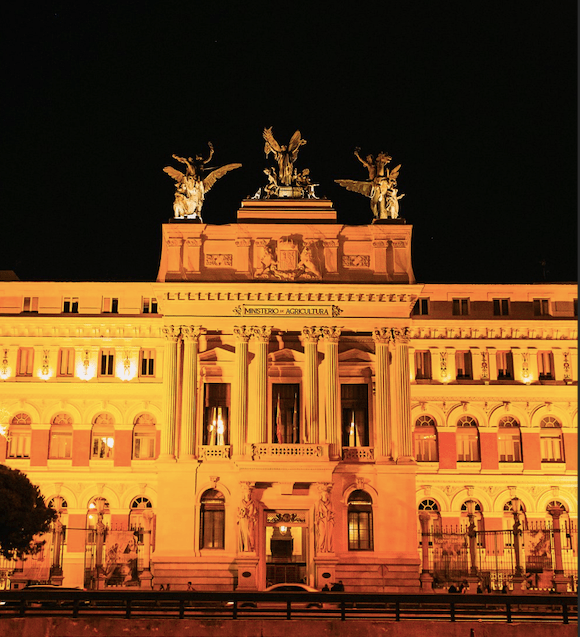 I had nowhere booked to stay for the night, so heading out of the station, I saw some brightly lit hotel signs in the distance and decided to walk towards them. It was already quite dark as it was around 8 pm. The weather was cool and dry, and similar to how it was in Barcelona. On the way, I saw the Ministry of Agriculture, a ornate and very regal-looking building, which is beautifully lit up at night.
