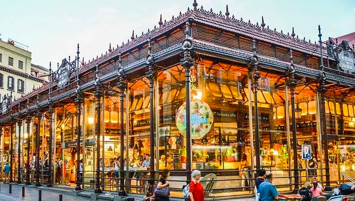 The American lady had just completed her tour of the Palacio Real, so came and met me at the cafe. We had a quick chat and then the lady went to buy a snack at a nearby cafe, while I went to see the huge square in front the palace and panoramic views of Madrid from there. We then queued up to see Almudena Cathedral which is right next to the palace. The interior of the cathedral was very beautiful and had quite a modern and colourful artistic style. After coming out of the cathedral, we headed to the small and quaint square, Plaza de la Villa, which still has buildings from the 15th, 16th, and 17th centuries. We then did a quick walk around inside the famous market, Mercado San Miguel.
