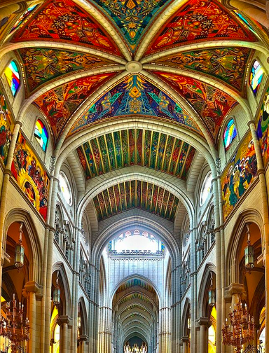 Santa María la Real de la Almudena (1879-1993) Cathedral located in Madrid, Spain. Neoclassical style (exterior), neogothic (interior), neo-Romanesque (crypt).